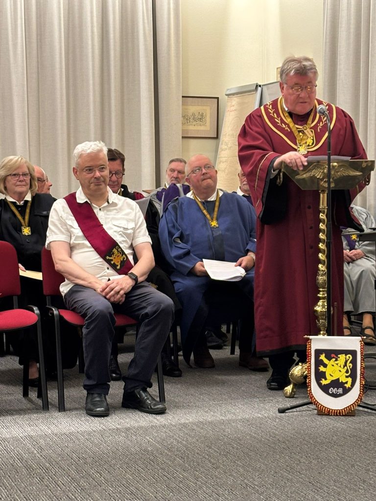 Meestal ben ik niet zo onwennig wanneer ik de openingsspeech moet uitspreken naar aanleiding van de intronisatie van een nieuwe ridder. Vandaag is dit echter anders. In deze sacrale omgeving waar normaal een grote stilte heerst en iedereen zich vlijtig kwijt van de taken die hem of haar worden opgelegd, komt hier dan plots een wereldse activiteit aan de orde van de dag.